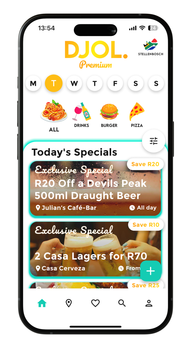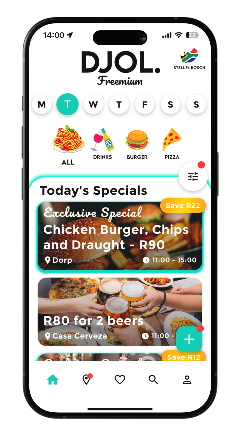 Are you a restaurant owner looking to reach more customers and showcase your specials? Partnering with DJOL is simple and effective. Join our growing platform to connect with users who are actively seeking dining options and deals in their area. To get started, send an email to hello@djol.co.za and we’ll get back to you explaining the costs and onboarding process.